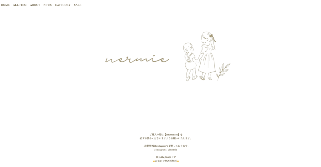 nermie(ねるみー)は、デザインや品質にこだわった洋服を世界中からセレクトし仕入れているお店です。ブランドについても人気ブランドから日本では珍しいブランドまで多く取り扱っています。また、特別な日に着る用のお洋服も販売していて、中でもベビー袴や着物はしっかりとした作りでデザインも良くおすすめです◎