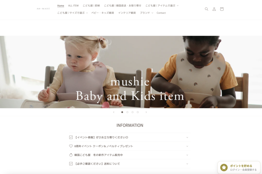 AHーMARTは、韓国から輸入した子供服やベビー雑貨を取り扱っているお店になります。